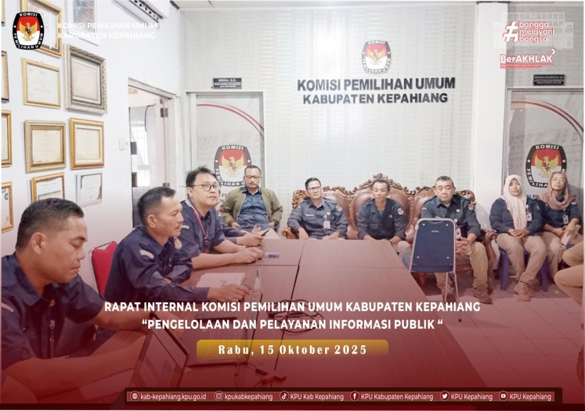 kab-kepahiang.kpu.go.id Atasan PPID, Pejabat, Tim Penghubung Layanan Informasi dan Desk Pelayanan Informasi dan Dokumentasi melaksanakan Rapat Internal mengenai Pengelolaan dan Pelayanan Informasi Publik, bertempat di ruang rapat KPU Kabupaten Kepahiang (14/10/2025).