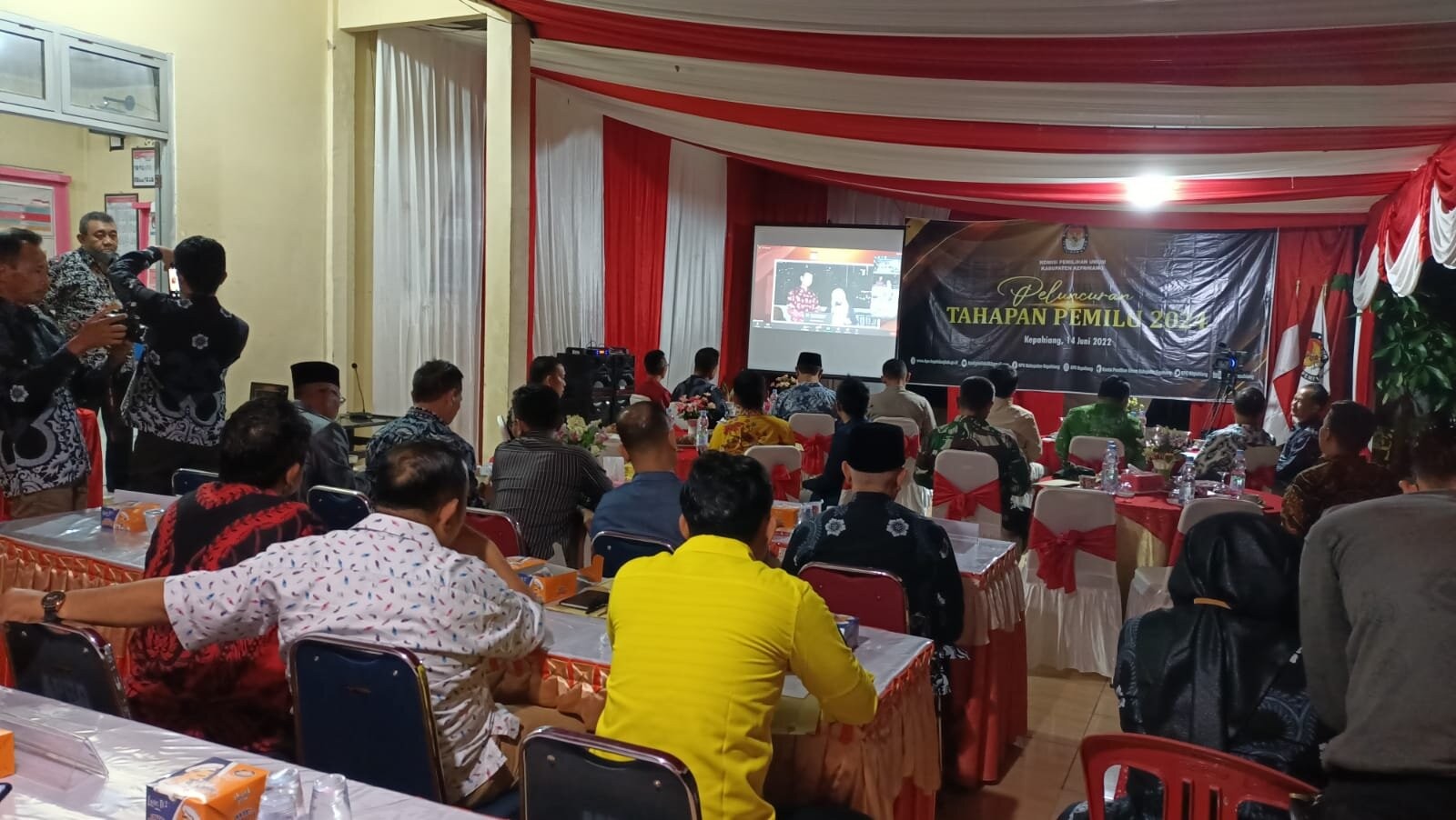 kab-kepahiang.kpu.go.id - Komisi Pemilihan Umum Kabupaten Kepahiang menggelar nonton bareng Peluncuran Tahapan Pemilu Tahun 2024 yang digelar secara serentak oleh KPU Republik Indonesia secara luring dan daring dengan zoom meeting dan live youtube bertempat di Aula Kantor, Selasa (14/06/2022)