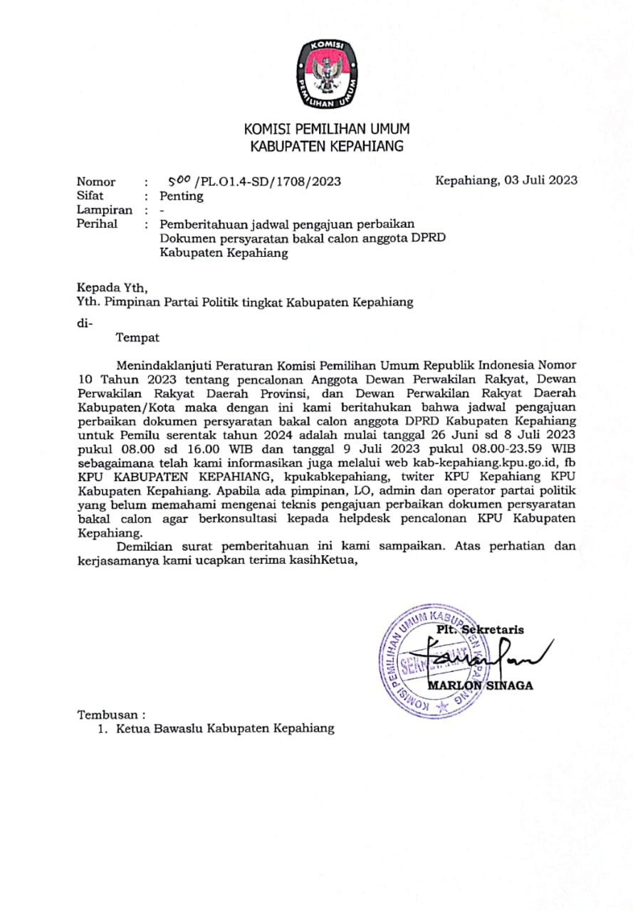 PEMEBERITAHUAN JADWAL PENGAJUAN PERBAIKAN