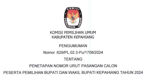 PENETAPAN NOMOR URUT PASANGAN CALON Senin, 23 September 2024 17:33 380 PENETAPAN NOMOR URUT PASANGAN CALON Bagikan: Dilihat 380 Kali.