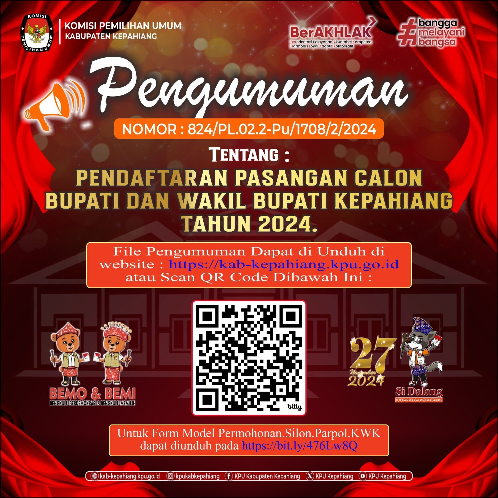 PENGUMUMAN PENDAFTARAN PASANGAN CALON BUPATI DAN WAKIL BUPATI KEPAHIANG TAHUN 2024