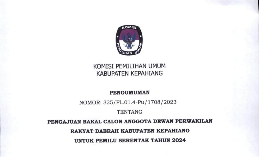 PENGUMUMAN PENGAJUAN BAKAL CALON ANGGOTA DEWAN PERWAKILAN RAKYAT DAERAH KABUPATEN KEPAHIANG UNTUK PEMILU SERENTAK TAHUN 2024