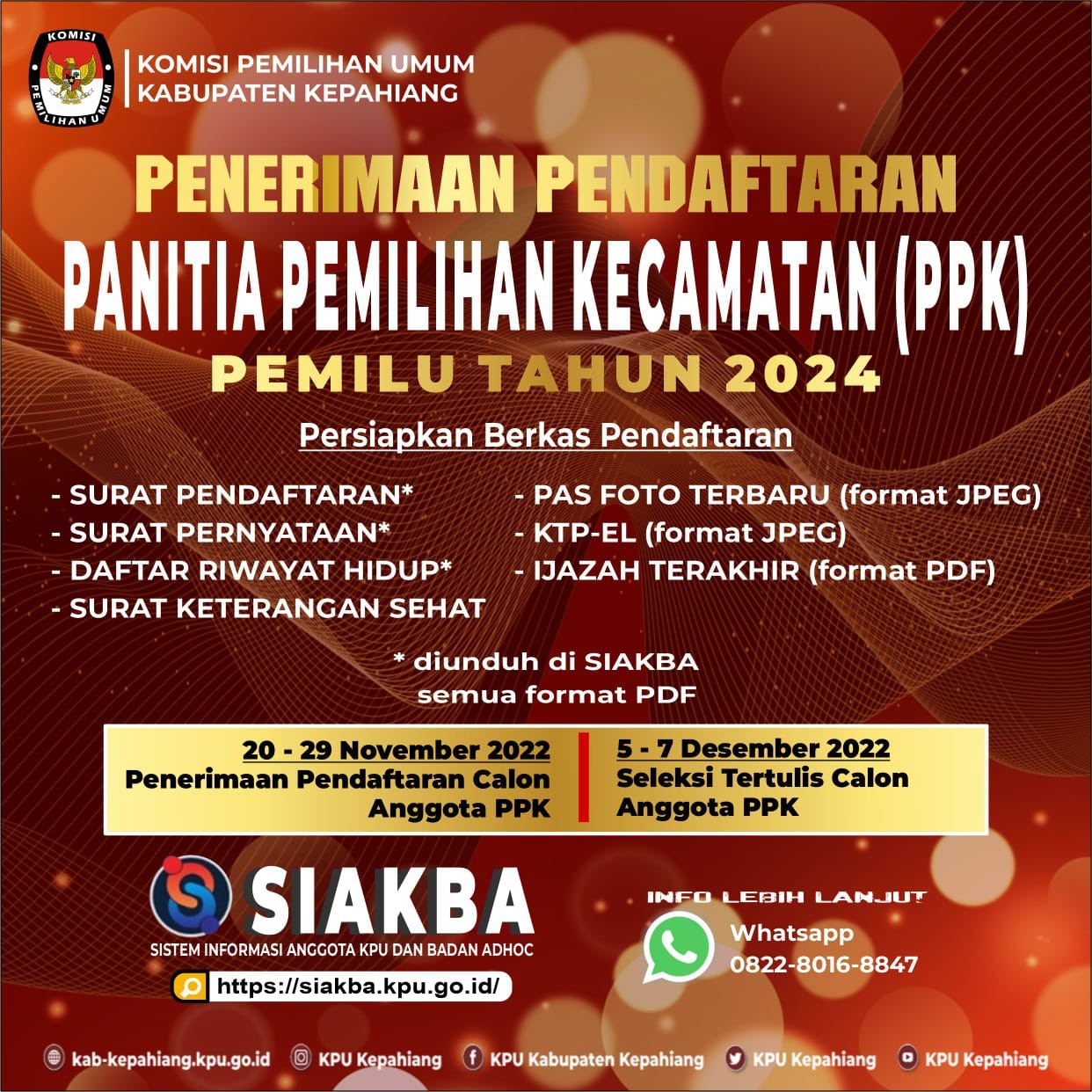 PENGUMUMAN SELEKSI PENERIMAAN CALON ANGGOTA PPK PEMILU TAHUN 2024 Minggu, 20 November 2022 00:00 1515 https://kab-kepahiang.kpu.go.id/public/kab-kepahiang/dmdocument/1668901388PENGUMUMAN SELEKSI PPK KPU KAB KEPAHIANG.pdf Bagikan: Dilihat 1,515 Kali.