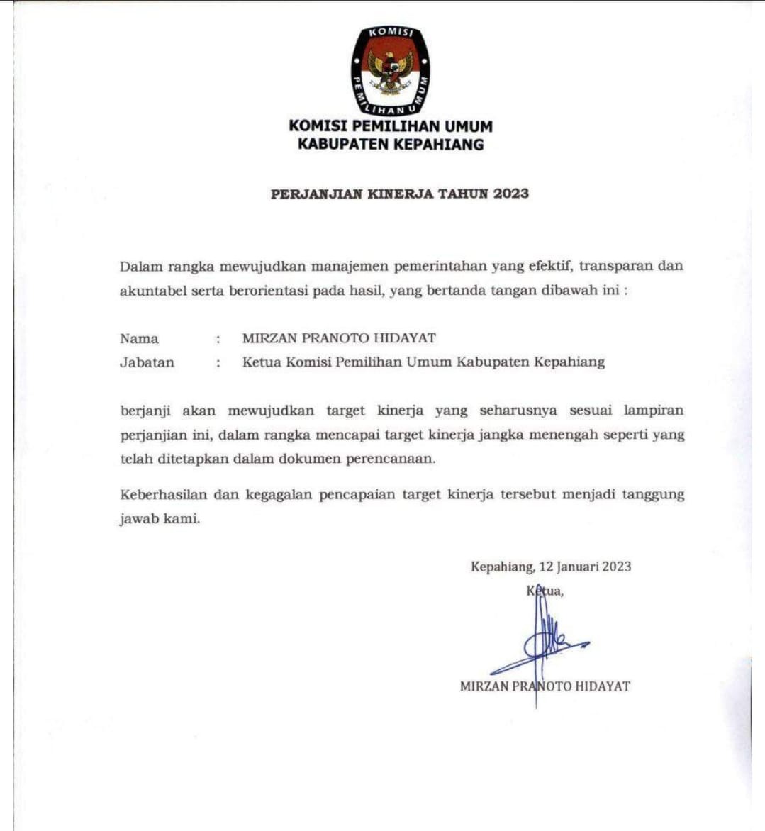PERJANJIAN KINERJA_KPU KABUPATEN KEPAHIANG TAHUN 2023