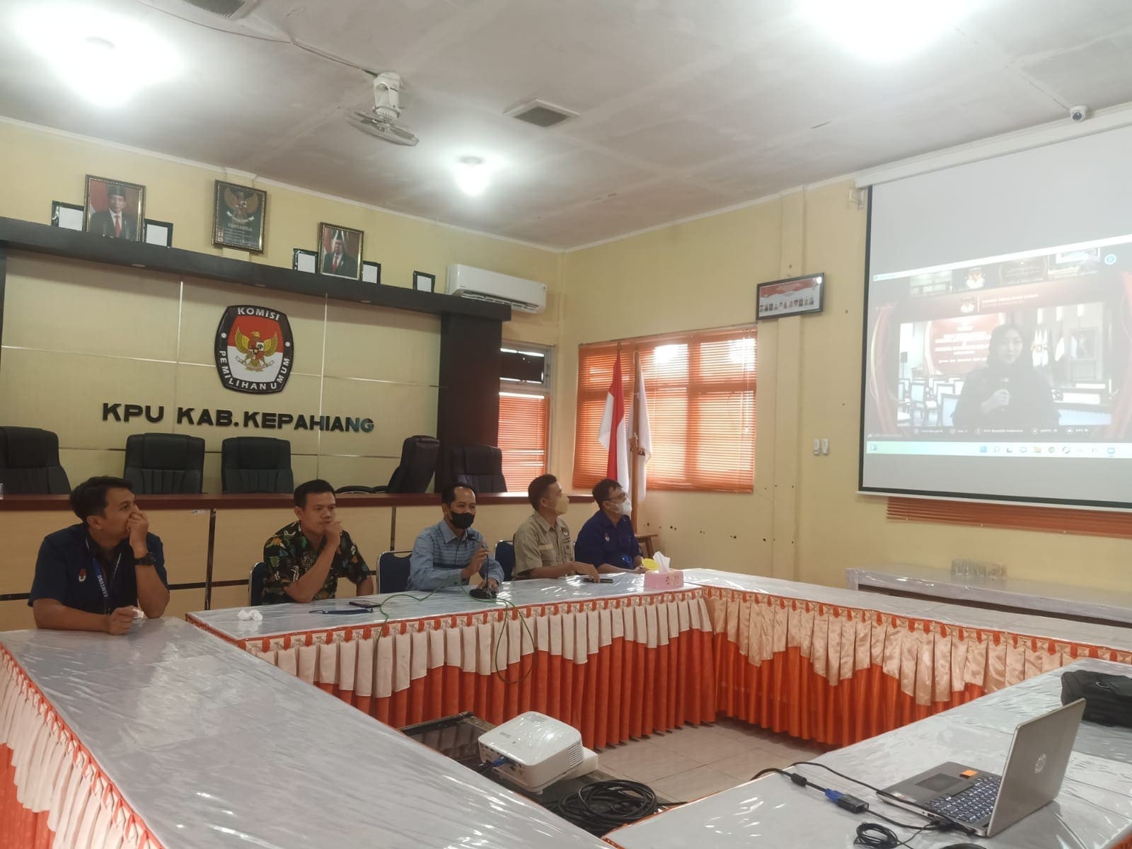 kab-kepahiang.kpu.go.id - Pasca dilantiknya Angggota KPU Republik Indonesia periode 2022 – 2027 oleh Presiden Republik Indonesia di Istana Negara pada hari ini tanggal 12 April 2022, Komisi Pemilihan Umum Republik menggelar kegiatan Penyambutan Anggota KPU RI Periode 2022-2027 dan Pelepasan Anggota KPU RI Periode 2017-2022, Kegiatan diawali dengan Apel Penerimaan Anggota KPU RI 2022-2027 di halaman KPU RI (apel diikuti seluruh jajaran KPU Prov/ KIP Aceh dan KPU/ KIP Kabupaten/ Kota) pukul 15.00 WIB, dan selanjutnya Serah Terima Jabatan Anggota KPU Periode 2017-2022 dan Anggota KPU Periode 2022-2027 pukul 17.00 WIB, dan Konferensi Pers mengumumkan Ketua dan Anggota Divisi KPU RI periode 2022-2027 pukul 17.30 WIB, Pelepasan Anggota KPU RI periode 2017-2022 pukul 19.00 WIB. Kegiatan ini diselenggarakan di Kantor KPU Republik Indonesia, dan diikuti secara daring oleh seluruh KPU Provinsi dan Kabupaten di seluruh Indonesia dengan peserta seluruh Anggota KPU dan pejabat struktural, fungsional dan staf Sekretariat KPU/KIP Aceh dan KPU Kab/Kota se-Indonesia. adapun Anggota KPU RI yang terpilih dan dilantik oleh Preisen adalah Betty Epsilon, Hasym asy'ari, Mochammad Afifudin, Parsadaan Harahap, Yulianto Sudrajat, Idham Holik, August Mellaz. pada KPU Kabupaten Kepahiang kegiatan digelar di Aula Kantor diikuti oleh Ketua KPU Kabupaten Kepahiang Mirzan Pranoto Hidayat beserta Komisioner lainnya dan juga Jajaran Sekretariat.