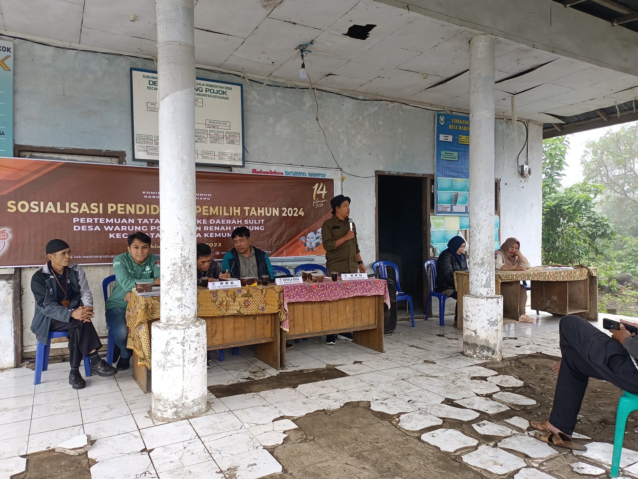 KPU Kabupaten Kepahiang melaksanakan kegiatan Sosialisasi pendidikan pemilih tatap muka Pemilu Tahun 2024, di Desa Renah Kurung dan Warung Pojok Kecamatan Muara Kemumu, giat ini dengan Narasumber Komisioner KPU Kabupaten Kepahiang Divisi Data Nurhasan, SH.I. Dengan peserta unsur pemuka agama, masyarakat dikedua Desa tersebut, serta dihadiri oleh kepala Desa beserta jajaran.